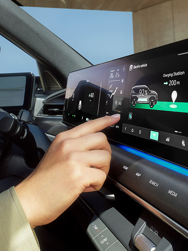 Auf dem hochauflösenden Panoramadisplay hast du wichtige Informationen sofort im Blick. Über zwei 31,2-cm-Digitaldisplays (12,3 Zoll) und einen 13,5 cm (5,3 Zoll) großen Bildschirm steuerst du wichtige Fahrzeugfunktionen und das Infotainment-System.